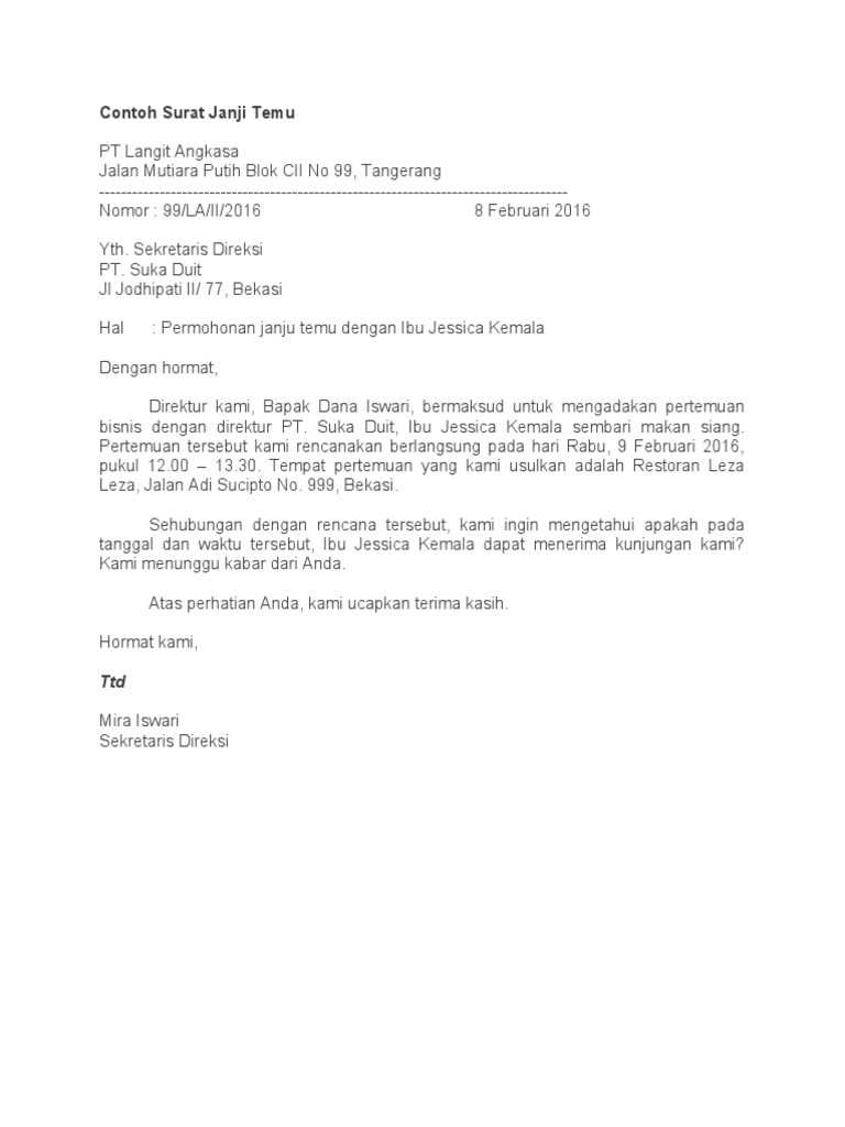 Nah agar kita bisa semakin lancar dalam berbahasa Inggris mengetahui frasa yang kerap digunakan dalam membuat appointment menjadi cukup penting. Contoh surat rasmi permohonan temu janji have an image associated. Suka Duit Ibu Jessica Kemala sembari makan siang.